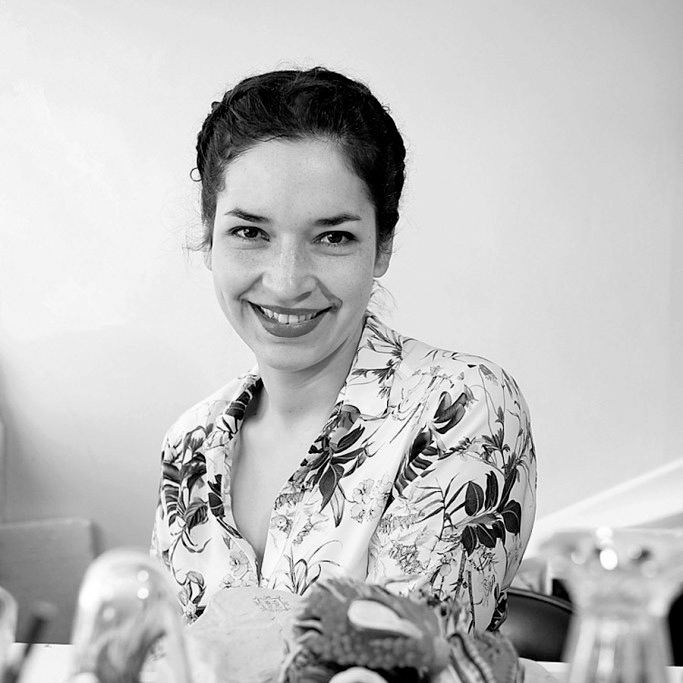 Escultora formada en la Universidad de Chile, especializada en fundiciones de bronce y aluminio. Ha sido finalista en diversos concursos nacionales, en los cuales ha destacado por sus relieves en plasticina y por esculturas inspiradas en los animales y elementos de la naturaleza. Utilizó técnicas digitales y de relieves en plasticina para crear la carátula de Postrimerías (AR007).