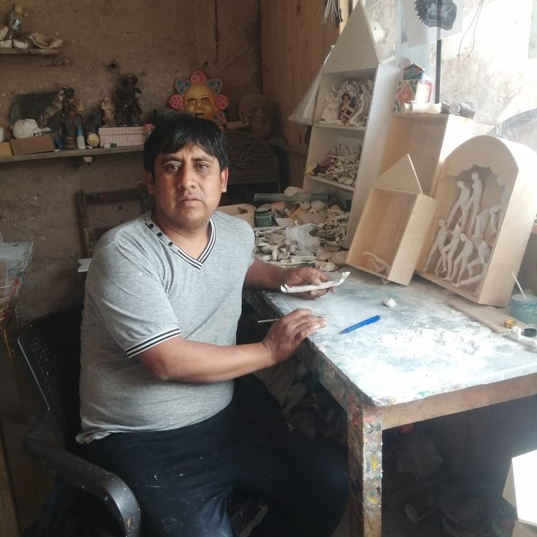 Taller familiar ubicado en el barrio de Quinuapata, en Ayacucho (Perú), fundado por Alejandro La Fuente, que se ve en la imagen. Cuenta con más de 30 años de experiencia en la creación de retablos tradicionales, cuyas figuras son moldeadas con una mezcla de yeso y harina de trigo. El retablo fotografiado para el compilado del XVI FIMA Usach (AR017) es de su autoría.