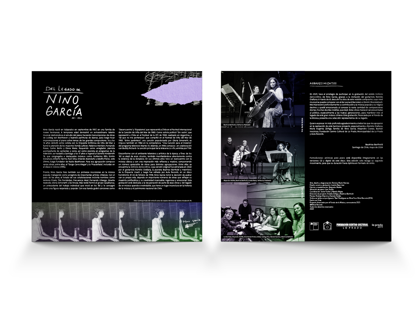 Disco que recupera parte del repertorio de cámara del compositor, pianista y arreglista Nino García, incluido un Cuarteto para violín, clarinete, violoncello y piano que había permanecido inédito durante 30 años. Todas las obras interpretadas por Beatrice Berthold (piano), Montserrat Prieto (violín), Kathya Galleguillos (clarinete), Marisol García (violoncello, 1-3) y Katharina Paslawski (violoncello, 12-14).